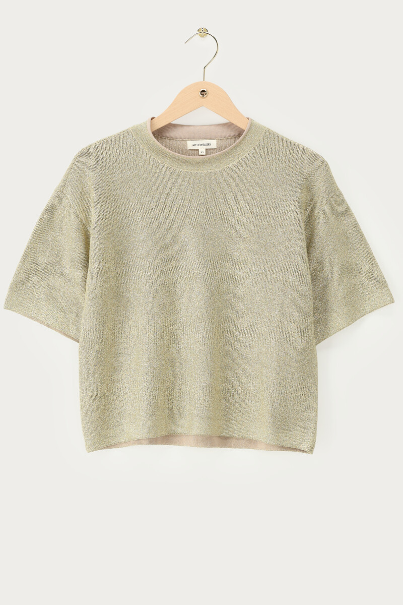 Beigefarbenes Lurex-Oberteil mit Rundhalsausschnitt
