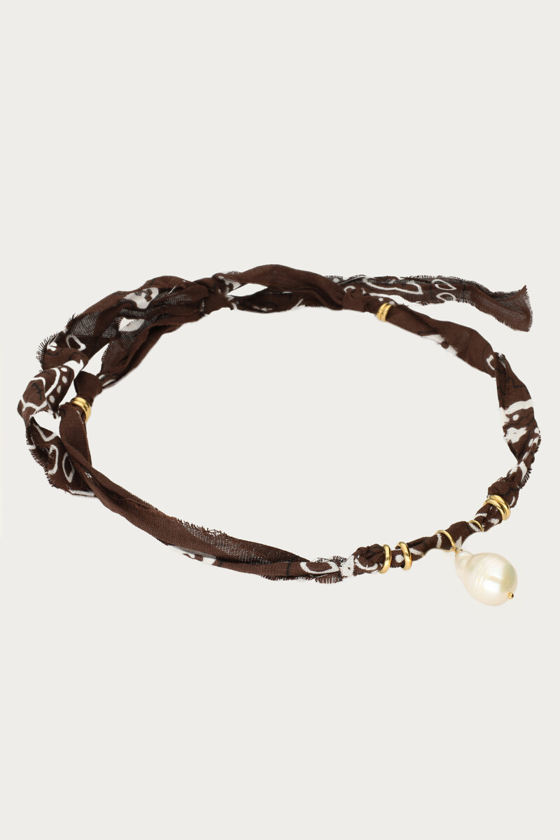 Braune Bandana-Halskette mit Süßwasserperle