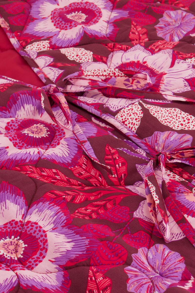 Braune Steppjacke mit Schleifen und pinkem Blumenmuster