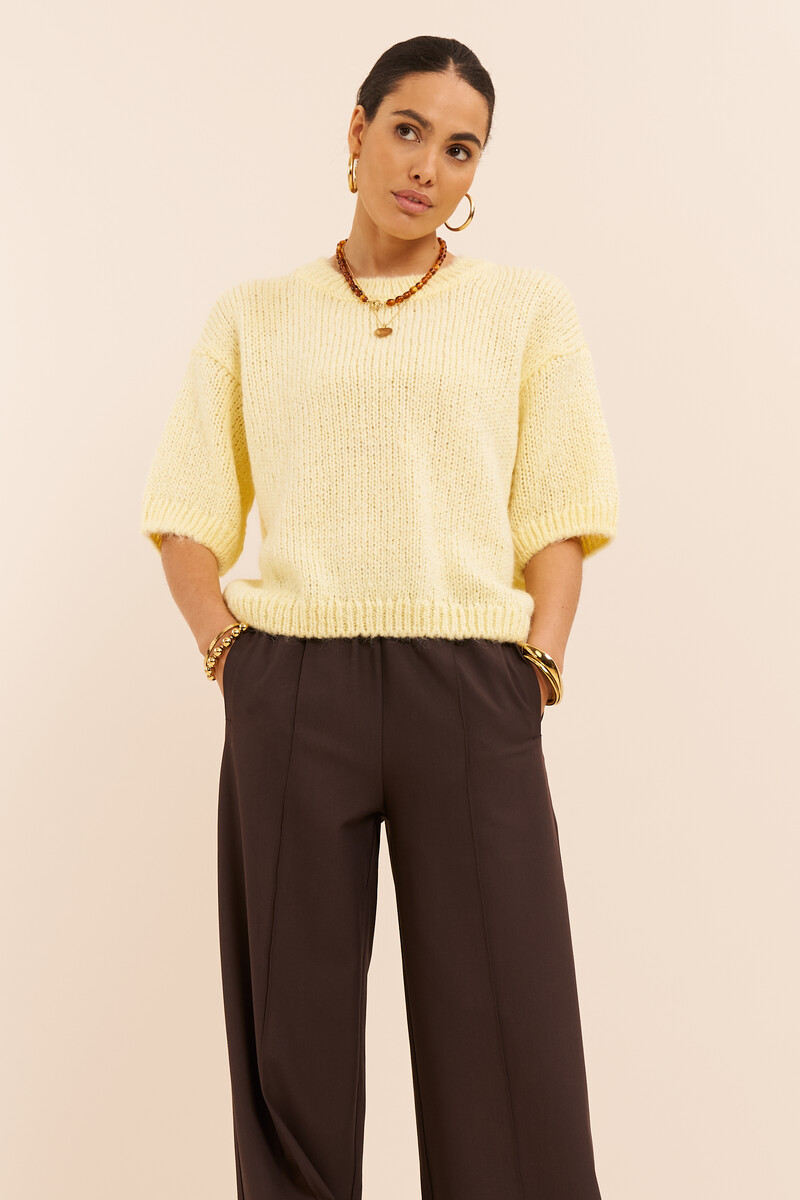 Gelber Strickpullover mit kurzen Ärmeln