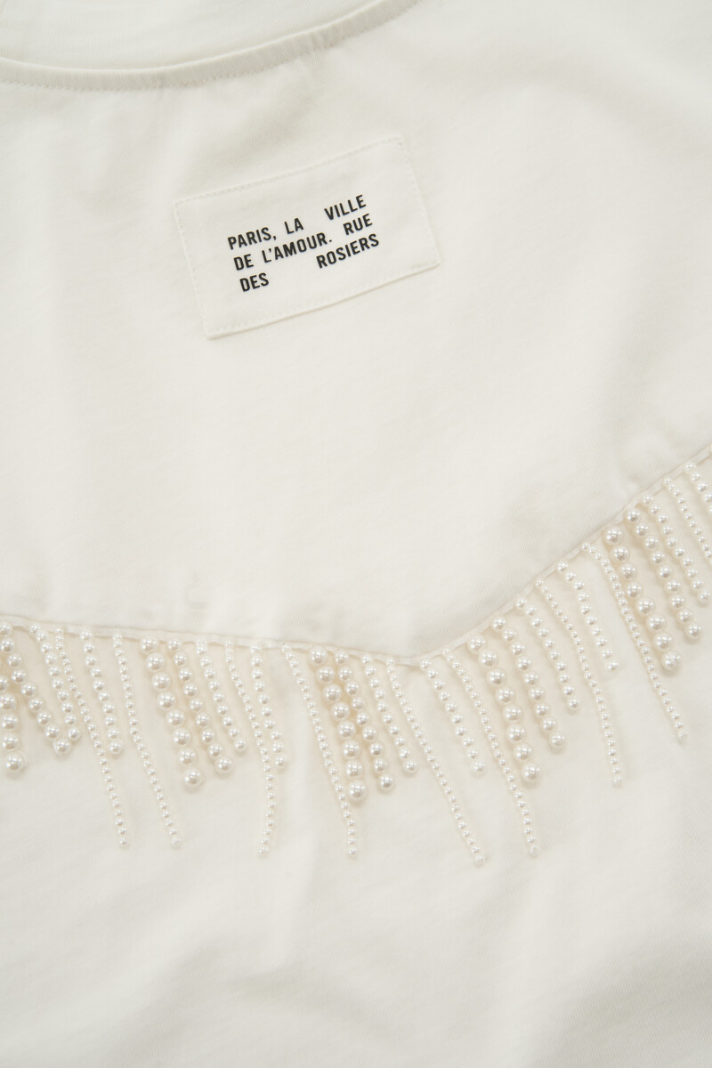 Weißes T-Shirt mit Kunstperlen-Fransen