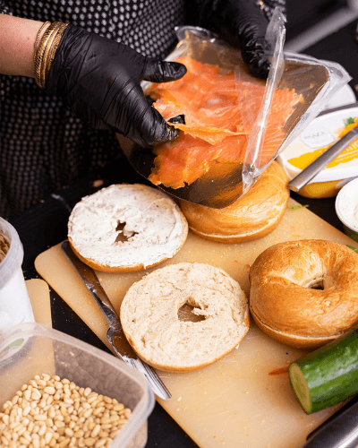 My colleague, Kim, and I can always be found in the Bistro, preparing fresh rolls, salads, poke bowls and snacks. In other words, I can usually be found cooking. Other tasks include, cleaning, ordering groceries and coming up with new dishes for the menu and/or adjusting existing dishes.
