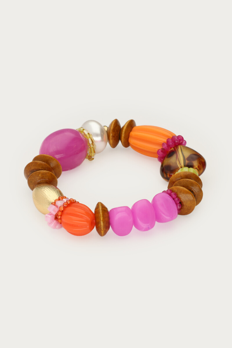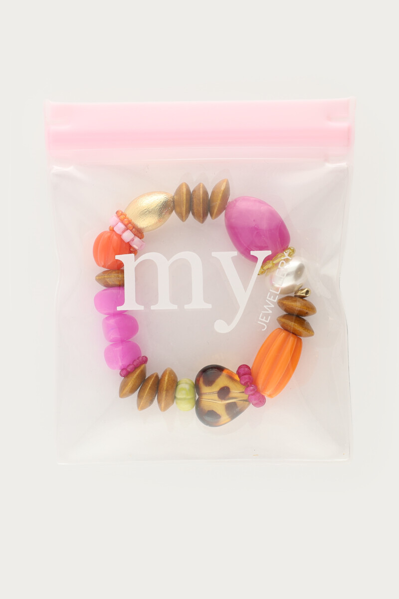 Multicoloured statement elastic beaded bracelet with faux pearl