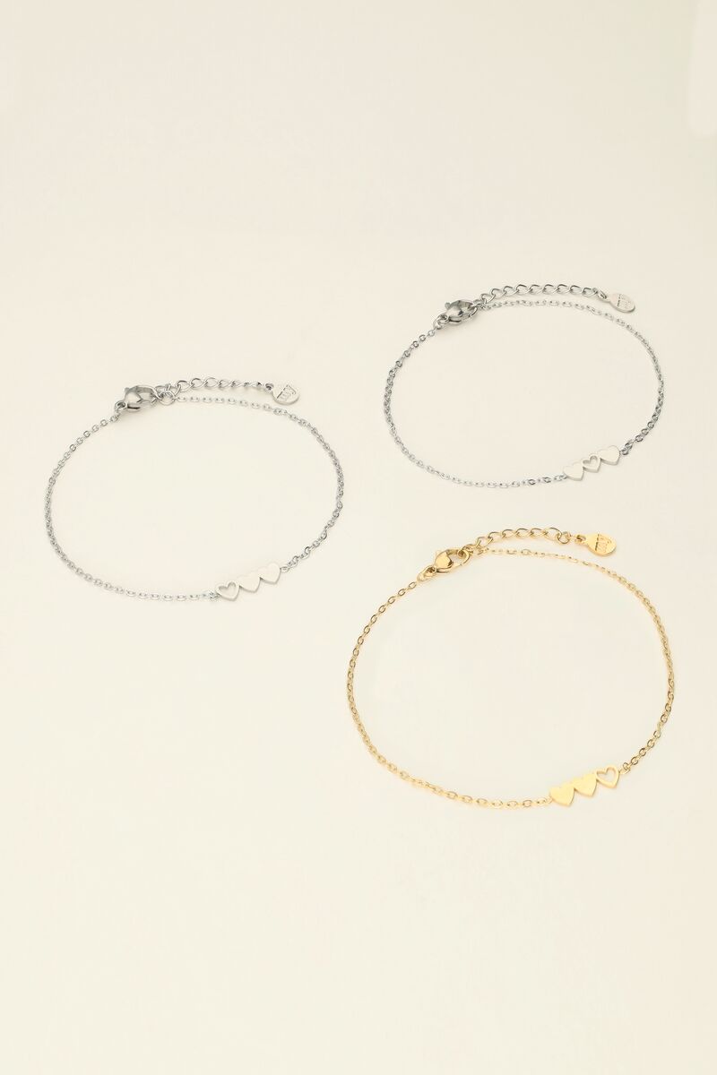 Set de 3 bracelets ‚àö‚Ć 3 coeurs - 2 couleur argentées & 1 couleur dor√©e