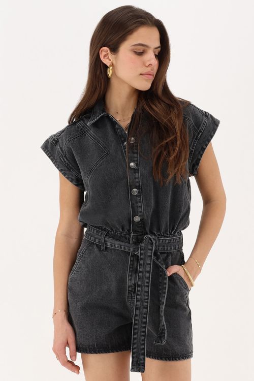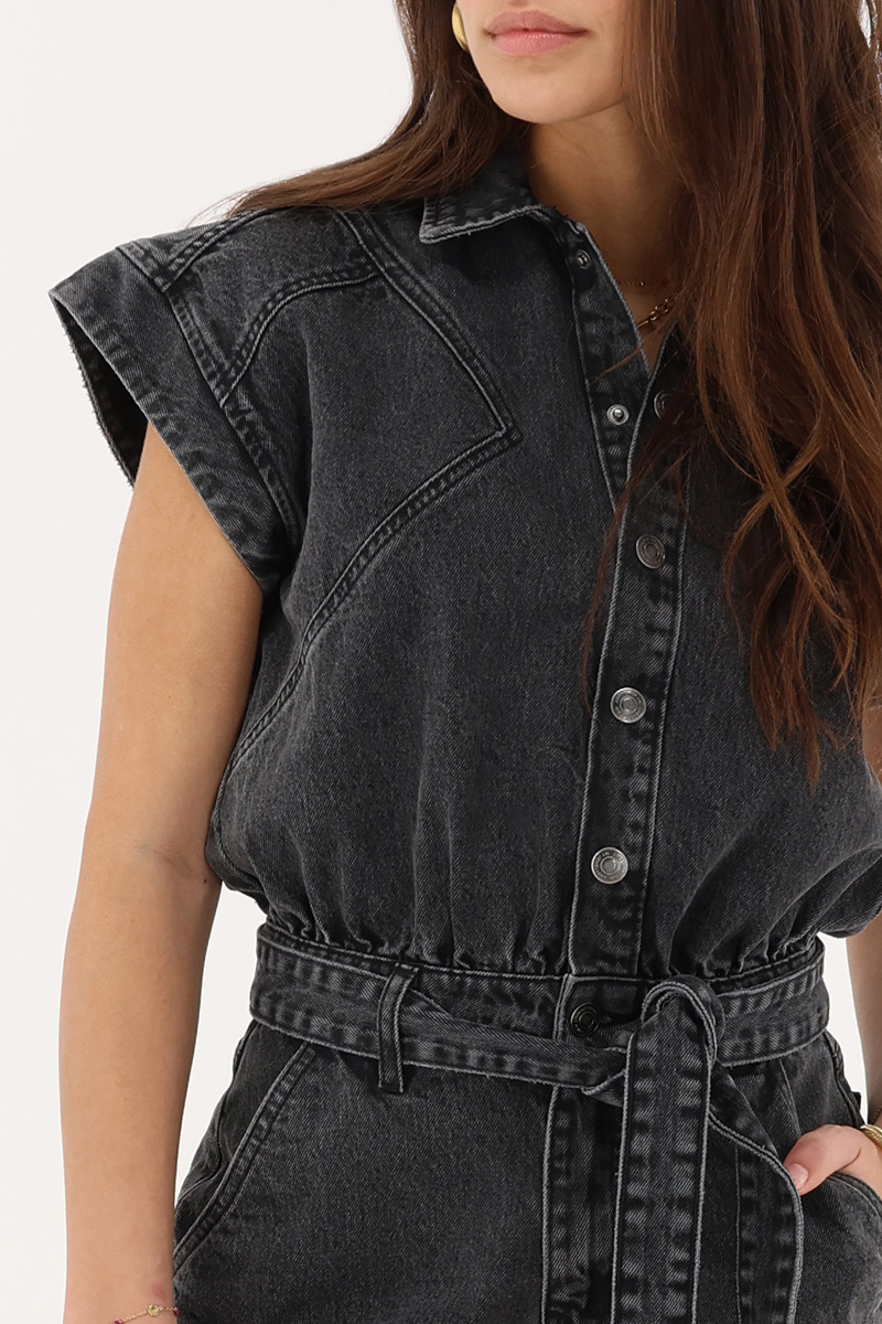 Grijze denim playsuit met ceintuur