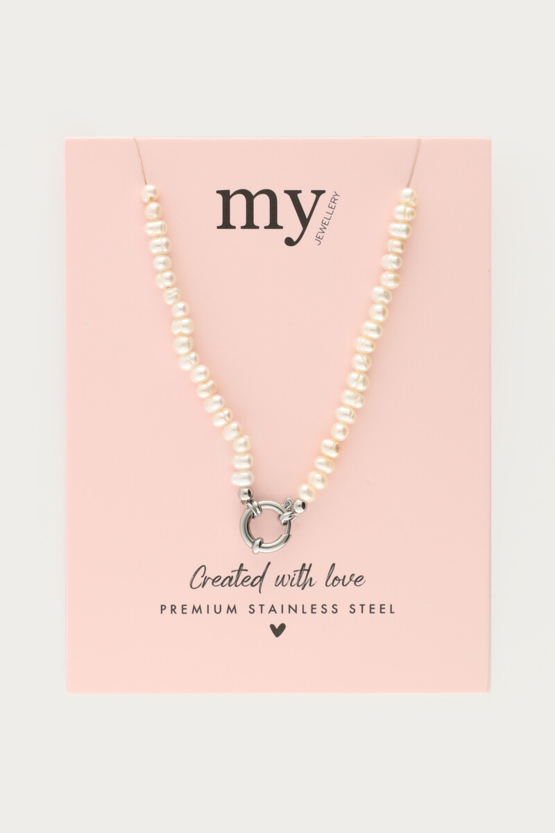 Ketting met slotje en zoetwaterparels medium